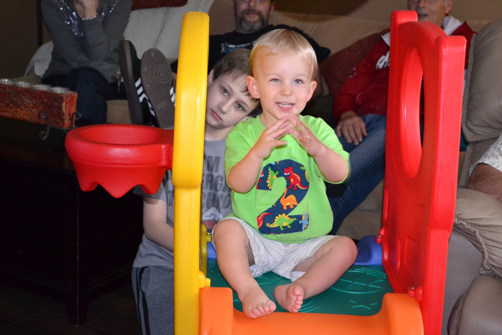 I made his shirt and he was so proud of it. He would pretty much showed it to everyone who walked in the door. He also loved the dinosaur noses we had.